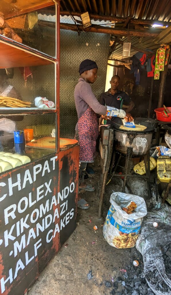 Auch heute stand keine Aktivität auf dem Plan. Ich hatte einfach viel zu viel Organisatorisches am Handy zu klären. Mein Visum für Tansania musste ich beantragen. Da ich aber mal wieder zu spät dran war, musste ich es über die tansanianische Botschaft in Kenya klären, dazu musste ein Nachweis der ein und Ausreise und ein Hostelnachweis für die ersten Tage im Land vorgelegt werden. Nachdem ich meine halbe Lebensgeschichte mit ihnen geteilt hatte, hatten sie hoffentlich alle nötigen Informationen beisammen und ich werde mein Visum rechtzeitig bekommen. Ansonsten hab ich dies und das geregelt, mal wieder ein paar Artikel in “Taste of the Unknown” und “Sound of Music” verfasst und auch wieder ein paar Telefonate geführt. Die Zeit vergeht damit schneller als man denkt. Zwischendurch meldete sich der Hunger und ich ging raus, suchte mir etwas zu Essen und schoss das heutige Foto des Tages. Eine ganz normale Verkaufsstelle, in der Chapatis, Rolex und Co. frisch zubereitet werden. Ich holte mir ein Rolex und ging wieder zurück. Noch einen frischen Maracuja-Saft und mit allem setzte ich mich wieder in den Park, um die Ruhe etwas zu genießen. Ich bin wirklich sehr froh, dass ich mich dazu entschieden habe, in Entebbe mit seinen 80.000 Einwohnern und nicht in Kampala mit 2.000.000 Einwohnern zu sein. Es liegt ja direkt Nebeneinander. Kampala ist sehr beschäftigt und Raub steht auf der Tagesordnung. In Entebbe herrscht eher Dorf-Feeling. Kaum eine befestigte Straße, ich kann mit Handy in der Hand umherlaufen und jeder quatscht einen an, weil man sich wundert, was ich hier mache, abseits der Touristenmassen. Dank Julie kann ich in eine tolle Nachbarschaft eintauchen und das normale Leben Kennenlernen. Da gerade Ferien sind, sind auch ganz viele Kinder auf den Straßen. Nachdem ich im Park von Ameisen attackiert wurde, war es vorbei mit der Ruhe, ich brachte meinen Mehrwegebecher zurück zu der Dame, die mir den leckeren Saft ausgeschenkt hatte und es ging wieder zurück in Julies Häuschen. Ein wenig Sport, noch mehr Telefonate und Organisation und ich hatte total vergessen, mein Tagebuch zu schreiben. Als ich mich gerade ins Bett legte, kam Julie endlich nach einem extrem langen Arbeitstag zurück und wir schliefen beide in ihrem Bett ein.