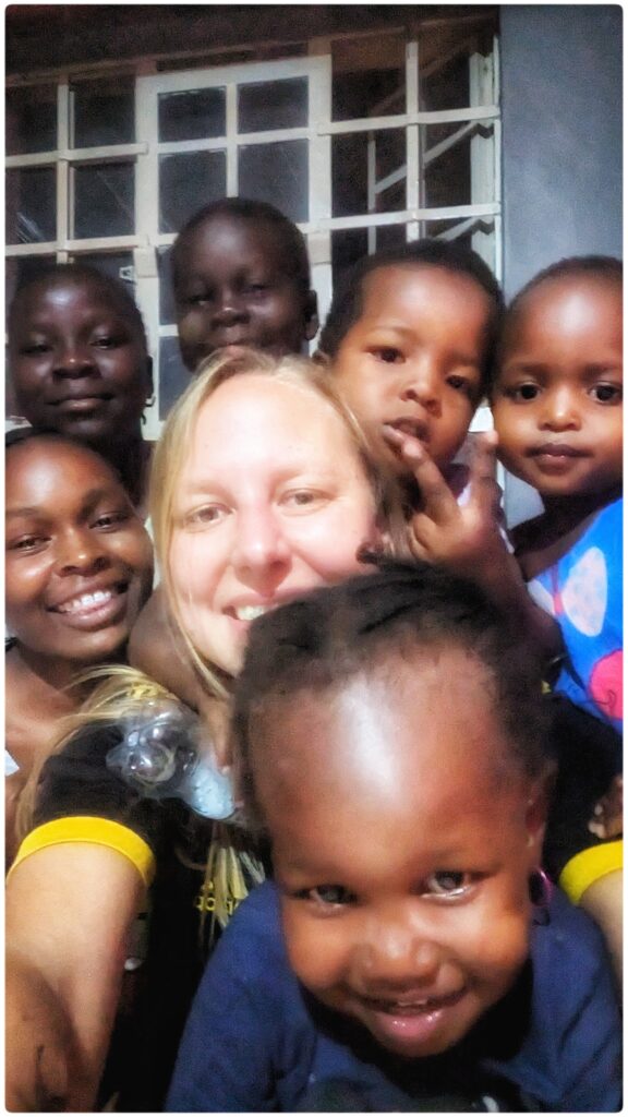 Nachdem ich 2 fast schlaflose Nächte hatte, habe ich einen Raum nur für mich bekommen mit einem Bett nur für mich. Dementsprechend konnte ich wie ein Baby schlafen. Zwar nur 5 Stunden, aber immerhin etwas. Als ich in den Raum mit den Kleinsten hereinkam, freuten sich alle schon wie die Großen. Zum Sonntagmorgen machte heute ein jeder ein wenig das, was er wollte. Ich knuddelte meine Liebsten beziehungsweise sie mich, wir kasperten etwas herum und sie hatten große Freude dabei, mit meinen Eltern zu telefonieren und meine Mama und endlich auch mal einen Papa kennenzulernen. Auch wenn die Verständigung auf Suaheli noch nicht so ganz klappte, hielt die Unterhaltung einige Lacher bereit und mein Handy verschwand das ein oder andere Mal. Zum Nachmittag hatten wir wieder Besuch von einer Familie, die uns Reus, Maismehl, Kekse und andere Süßigkeiten spendete. Bei 150 hungrigen Mäulern wird täglich viel verspeist. Nachdem alles sicher verstaut war, war ich wieder an der Reihe, mein kleiner Liebling Jamal schreite wie am Spieß und ließ sich von keinem beruhigen. Einmal auf meinem Arm, raus aus dem viel zu heißen und lauten Raum raus in die frische Luft, war Ruhe und er schlief ein. Nach 2 Stunden herumtragen, wollte ich ihn abgeben und das Geschrei fing wieder an. Also nochmal eine Runde auf mir aber irgendwann war er dann doch so geschafft, dass ich ihn ablegen konnte. Nun waren die anderen an der Reihe. Nachdem unser ägyptischer Gast ausschließlich mit den Jungen spielte, taten mir die Mädchen Leid und ich fing an mit ihnen zu spielen. Es wurden immer mehr. Am Ende machten wir Handstand, Kopfstand, Brücke, spielten fangen Huckepack und natürlich durfte auch jeder mal auf meine Schultern, da ich weiß, wie toll das ist, dort oben zu sein. Noch eine abschließende gemeinsam Gymnastik an der Wand und ich war komplett durchgeschwitzt. Es ist wirklich bezaubernd, wie alle an meinen Lippen hingen und mir vertrauten, aber als ich ihnen meinen Ein-Hand-Handstand zeigte, waren sie überzeugt. Zum Ausruhen ging es auf eine der vielen Matratzen, die hier herumliegen und wir schossen das Foto des Tages.