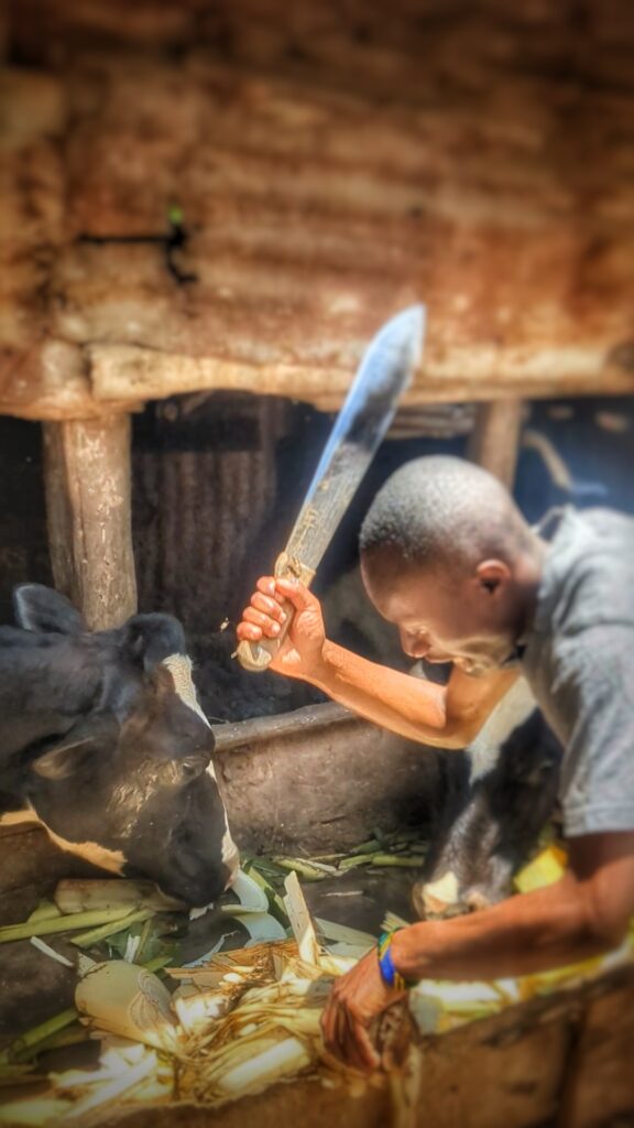 Heute war ich bei der Familie eingeladen, bei deren Schwester ich vor einigen Tagen Couchsurfen war. Mit dem Dala Dala ging es nach Shangarai. Nach der kurzen Fahrt wurde ich noch mehr als sonst, angestarrt, angesprochen und konnte hören, wie wirklich jeder über mich redete, an dem ich vorbei lief. Während ich den Weg mit Google Maps zu finden versuchte, kam mir Norah schon entgegen und nahm mich in Empfang, denn das Haus war hinter einem anderen Haus versteckt und stand in seiner eigenen Bananenplantage, war also gut getarnt. Zunächst wechselte ich erstmal die Schuhe, denn das kleine Grundstück ähnelte einem großen Bauernhof. Direkt erstmal in Hühnersch… getreten zur Begrüßung von Naimani und er nahm mich mit zu den Kühen, die einen klein gehakten Bananenstumpf zum Fressen bekamen. 4 Kühe, 2 Mütter und ihre 2 Kälber waren zu versorgen, versorgen aber auch im Gegenzug die Familie. Hier schieße ich direkt das Foto des Tages. Nachdem Norah und ich das Geschirr vom Frühstück draußen an der Wasserstelle in 2 großen Schüsseln abgewaschen hatten und die Hühner die Essensreste fein säuberlich aufpickten, machten wir uns schon an die Zubereitung des Mittagessens. Auch die Mutter des Hauses schaute jetzt mal kurz vorbei. Da ich von Naimani wusste, dass sie Massai ist, war ich nicht überrascht, als eine wunderschöne, große, schlanke Frau vor mir stand. Aber nicht sie kümmerte sich ums Mittagessen, sondern die 18 jährige Norah. Ich half ihr dabei. Draußen in einer separaten Hütte würde ein Feuer angeschürt, wo später der Reis drauf gekocht wurde. Dauerhaft um uns herum geisterten die 2 süßen Kätzchen. Kein Tier hier auf dem Hof hat einen Namen, nicht mal Hund und Katze. Wir sind nun drinnen und während ich Möhren raspel, wird mir “frische” Sauermilch angeboten. Ich probiere erstmal skeptisch, aber bin auch extrem neugierig, da sie ja von den eigenen Kühen ist, die wir vorhin erst gefüttert haben und 2 mal täglich gemolken werden. Es schmeckt erstaunlich gut und da ich schon ewig nichts süßes mehr gegessen habe, ist es fast wie eine Nachspeise als Einstimmung fürs Mittagessen, das aber erst noch zubereitet werden muss. Alles geschieht ohne Tisch. Der Topf steht auf einem Kochaufsatz auf einer Gasflasche. Ich raspel die Möhren in einer Schüssel auf meinem Schoß und Norah schneidet das andere Gemüse gekonnt ohne Brettchen in ihren Händen während das Fleisch im Topf schon mit klein geriebenem Ingwer, um weicher zu werden, vor sich hin köchelt. Wieder was gelernt, denke ich mir. Und raspel fleißig weiter als etwas in Erinnerungen schwelge und Norah von unserem Möhren-Salat mit daran geraspeltem Apfel erzähle. Da sie begeisterte Köchin ist, fragt sie mich, ob ich den Möhren-Salat bitte zubereiten könnte, wozu ich natürlich nicht nein sagen kann. Am Ende wird noch frischer Spinat mit Zwiebeln angebraten und das Menü ist fertig. Reis mit einer Art Gulasch, Spinat und guter deutscher Möhrensalat. Jeder der kostet ist überrascht und ich freue mich, auch ein wenig meiner Kultur übermitteln zu können. Nachdem wir gegessen haben, sind auf einmal alle müde. Norah und Naimani schlafen auf der Couch ein. Als auch ich mich hinlegen möchte, kommt Thomas, ein weiterer Bruder ins Haus und wir führen eine lange und sehr gute Unterhaltung. Er studiert Psychologie und wir finden 1000 verschiedene Themen über die wir reden können, von Rassismus über die Schwierigkeit des Erlernens einer neuen Sprache, wie Suaheli, Deutsch, Spanisch oder Chinesisch, zu Musik in Afrika bis hin zu meinem Aufenthalt in Tansania von vor 6 Jahren. Die Themen scheinen endlos zu sein, doch irgendwann wird es spät und bevor es dunkel ist, möchte ich doch wieder zurück in der Stadt sein, also verabschieden wir uns auf ein Wiedersehen. Das völlig überfüllte Dala Dala bringt mich zurück und zum Abendessen gönne ich mir heute nochmal einen Ingwer-Zitronen-Honig-Tee und zur Abwechslung mal eine Pizza.