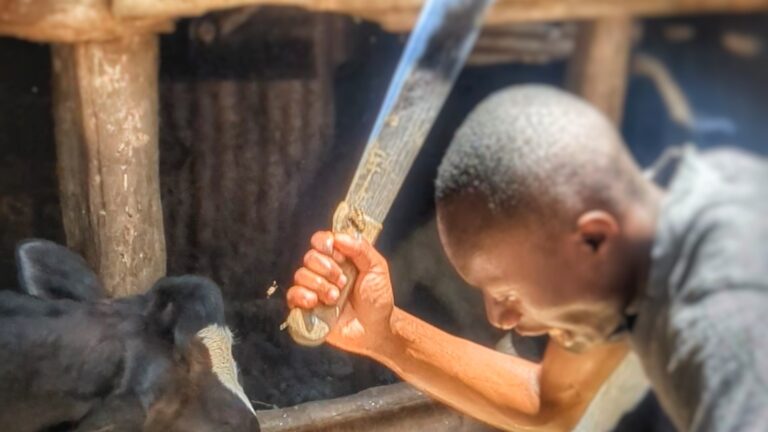 Heute war ich bei der Familie eingeladen, bei deren Schwester ich vor einigen Tagen Couchsurfen war. Mit dem Dala Dala ging es nach Shangarai. Nach der kurzen Fahrt wurde ich noch mehr als sonst, angestarrt, angesprochen und konnte hören, wie wirklich jeder über mich redete, an dem ich vorbei lief. Während ich den Weg mit Google Maps zu finden versuchte, kam mir Norah schon entgegen und nahm mich in Empfang, denn das Haus war hinter einem anderen Haus versteckt und stand in seiner eigenen Bananenplantage, war also gut getarnt. Zunächst wechselte ich erstmal die Schuhe, denn das kleine Grundstück ähnelte einem großen Bauernhof. Direkt erstmal in Hühnersch… getreten zur Begrüßung von Naimani und er nahm mich mit zu den Kühen, die einen klein gehakten Bananenstumpf zum Fressen bekamen. 4 Kühe, 2 Mütter und ihre 2 Kälber waren zu versorgen, versorgen aber auch im Gegenzug die Familie. Hier schieße ich direkt das Foto des Tages. Nachdem Norah und ich das Geschirr vom Frühstück draußen an der Wasserstelle in 2 großen Schüsseln abgewaschen hatten und die Hühner die Essensreste fein säuberlich aufpickten, machten wir uns schon an die Zubereitung des Mittagessens. Auch die Mutter des Hauses schaute jetzt mal kurz vorbei. Da ich von Naimani wusste, dass sie Massai ist, war ich nicht überrascht, als eine wunderschöne, große, schlanke Frau vor mir stand. Aber nicht sie kümmerte sich ums Mittagessen, sondern die 18 jährige Norah. Ich half ihr dabei. Draußen in einer separaten Hütte würde ein Feuer angeschürt, wo später der Reis drauf gekocht wurde. Dauerhaft um uns herum geisterten die 2 süßen Kätzchen. Kein Tier hier auf dem Hof hat einen Namen, nicht mal Hund und Katze. Wir sind nun drinnen und während ich Möhren raspel, wird mir “frische” Sauermilch angeboten. Ich probiere erstmal skeptisch, aber bin auch extrem neugierig, da sie ja von den eigenen Kühen ist, die wir vorhin erst gefüttert haben und 2 mal täglich gemolken werden. Es schmeckt erstaunlich gut und da ich schon ewig nichts süßes mehr gegessen habe, ist es fast wie eine Nachspeise als Einstimmung fürs Mittagessen, das aber erst noch zubereitet werden muss. Alles geschieht ohne Tisch. Der Topf steht auf einem Kochaufsatz auf einer Gasflasche. Ich raspel die Möhren in einer Schüssel auf meinem Schoß und Norah schneidet das andere Gemüse gekonnt ohne Brettchen in ihren Händen während das Fleisch im Topf schon mit klein geriebenem Ingwer, um weicher zu werden, vor sich hin köchelt. Wieder was gelernt, denke ich mir. Und raspel fleißig weiter als etwas in Erinnerungen schwelge und Norah von unserem Möhren-Salat mit daran geraspeltem Apfel erzähle. Da sie begeisterte Köchin ist, fragt sie mich, ob ich den Möhren-Salat bitte zubereiten könnte, wozu ich natürlich nicht nein sagen kann. Am Ende wird noch frischer Spinat mit Zwiebeln angebraten und das Menü ist fertig. Reis mit einer Art Gulasch, Spinat und guter deutscher Möhrensalat. Jeder der kostet ist überrascht und ich freue mich, auch ein wenig meiner Kultur übermitteln zu können. Nachdem wir gegessen haben, sind auf einmal alle müde. Norah und Naimani schlafen auf der Couch ein. Als auch ich mich hinlegen möchte, kommt Thomas, ein weiterer Bruder ins Haus und wir führen eine lange und sehr gute Unterhaltung. Er studiert Psychologie und wir finden 1000 verschiedene Themen über die wir reden können, von Rassismus über die Schwierigkeit des Erlernens einer neuen Sprache, wie Suaheli, Deutsch, Spanisch oder Chinesisch, zu Musik in Afrika bis hin zu meinem Aufenthalt in Tansania von vor 6 Jahren. Die Themen scheinen endlos zu sein, doch irgendwann wird es spät und bevor es dunkel ist, möchte ich doch wieder zurück in der Stadt sein, also verabschieden wir uns auf ein Wiedersehen. Das völlig überfüllte Dala Dala bringt mich zurück und zum Abendessen gönne ich mir heute nochmal einen Ingwer-Zitronen-Honig-Tee und zur Abwechslung mal eine Pizza.