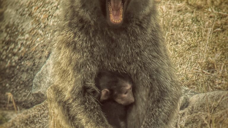 Was für eine Nacht. Ich glaube ich habe alles herausgeschwitzt, was möglich ist. Die neue Antibiose scheint zu arbeiten. Unser Frühstück bekommen wir bei Anna im Hotel. Danach trete ich aus dem Hotel, Avi spricht mit einem Fahrer aus einem Safari-Fahrzeug, ich Stelle mich auch vor und er nimmt mir meinen Rucksack ab und packt ihn ins Auto. Danach gehen wir zu Anna und sie meint, wir müssen noch auf unseren Fahrer warten. Jetzt werde ich das erste Mal stutzig, aber warte einfach. Als unser Fahrer da ist, gehen wir auf die Straße. Ist das unser Fahrer? Nicht der andere? Mein Rucksack ist in einem anderen Auto. Anna weiß gottseidank sofort, wen sie anrufen muss. Er ist schon raus aus der Stadt. Wir haben das gleiche Ziel am heutigen Tag, also sollte es erstmal kein Problem sein. Wir fahren zum Tarangire Nationalpark. Mein erster Eindruck von unserem Fahrer Nico ist erstmal kein guter. Er telefoniert die gesamte Fahrt durch, anstatt an seinen Kunden, Avi und mir, interessiert zu sein. Als Nico sich um die Tickets für den Nationalpark kümmert, bestaunen wir die riesigen Baobabs nahe des Eingangstores und kommen uns Gespräch mit Frank, einem 36 jährigen Massai. Wir fragen ihn ein paar Löcher in den Bauch. Er ist der erste Massai, der uns nicht mit ausgestreckter Hand entgegen kam, um Geld von uns zu verlangen. Auch am Ende, als wir ein Erinnerungsfotos mit ihm schießen, möchte er kein Geld von uns. Das war mal eine nette Begegnung. Einmal im Park, zeigt sich die wahre Stärke und Begeisterung. Man merkt, dass er das seit 15 Jahren macht. Er scheint jeden zu kennen und einen Darf-Schein zu haben, an allen anderen Safari-Trucks, die in einer Schlange stehen, vorbeizufahren und uns so extrem viel Zeit zu sparen. Er sichert uns immer im Handumdrehen den besten Platz, um die Tiere zu beobachten. Vor 6 Jahren habe ich hier meine erste Safari gemacht. Damals waren es etwa 10 Fahrzeuge pro Tag. Heute sind es 50 Stück an einem Ort. Heute ist irgendwie der Wurm drin. Nach dem Beobachten von ein paar Löwen lasse ich mein Handy auf dem Dach liegen, wir fahren los, ich: wo ist mein Handy, warte, warte. Natürlich ist es herunter gefallen, Rückwärtsgang rein und gottseidank da liegt es. Ein anderers Auto kommt gerade. Ich überlege nicht lang. Autotür auf, barfuß renne ich raus, gebe Handy, Kreditkarte und Handyhülle auf und renne schnell wieder zurück ins Auto. Alles nochmal gut gegangen, aber ich muss ziemlich über mich selbst lachen. Etwas mehr Konzentration ab jetzt! Wir fahren weiter. Nach 100 m sehen wir schon die nächsten Löwen, also sollte es wirklich nicht nochmal passieren. Die Löwen lauern und haben die Herde Zebras und Gnus ins Visier genommen. Im hohen Gras pirschen sich die Löwinnen immer näher heran. Wir wollen abwarten, auch wenn eine Jagd 3 Stunden dauern kann. Sie sind schon so nah dran. Ich merke richtig, wie mein Adrenalinspiegel steigt. Und dann rennt die riesige Herde plötzlich davon, das Ganze verlagert sich auf die andere Flussseite. Wir wechseln schnell die Seite. Dort angekommen, ist es schon passiert. Die Löwin kämpft noch mit dem Gnu, aber es liegt schon am Boden. Nach 5 Minuten totbeißen, begibt sich die Löwin in den Schatten. Bevor sie anfängt zu fressen, muss sie sich erstmal ausruhen. Das heißt für uns: ab zum Picknick-Spot! Er ist gottseidank ganz in der Nähe. Es ist richtig voll. Wir finden noch einen freien Tisch. Wir haben nun einen superschönen Blick auf den unter uns liegenden Tarangire-River. Wo Touristen speisen, gibt es auch immer Affen, die einem das Essen stehlen wollen und so ist es auch hier. Die Vervet-Affen sind überall. Aber wir haben Glück. Sie lassen uns in Ruhe und so können wir unsere erste Mahlzeit auf der Safari genießen. Super lecker. Nachdem wir fertig sind, werden schnell noch ein paar Fotos von der Aussicht und den Affen gemacht und dann geht es wieder zurück, zurück wo die Löwin nun soweit war und ihre Beute verspeiste. Was für ein Timing. Nachdem wir uns wortwörtlich satt gesehen hatten, fuhren wir nun in einen anderen Teil des Parkes. Und hier fiel es mir nun wie Schuppen von den Augen. Hier war ich schon mal, hier hatte ich eine meiner besten Erinnerungen an Elefanten. Hier habe ich eines meiner Lieblingsfotos geschossen. Und hier sind auch wie schon vor 6 Jahren unglaublich viele Elefanten. Wir hören sie richtig laut rufen: “Töröööö!” Meine Augen strahlen. Schon jetzt bin ich froh, mich doch nochmal zu einer Safari breitschlagen haben zu lassen. Diese Eindrücke, nochmal völlig neu, völlig anders, als alles, was ich bisher erleben durfte. Die Elefantenkarawane zieht einmal durchs vertrocknete Flussbett. Ein kleiner rennt hinterher und meint: “Törö, wartet auf mich, törö!”. Der Bulle ist bereit sich zu paaren. Der kleinste versucht bei Mama Milch zu bekommen. Wie im Bilderbuch. Von allem etwas. Kurz bevor sich die Sonne verabschiedet, verlassen wir den Park. Am Parkausgang wartet mein Rucksack auf mich. Der andere Fahrer hat ihn hier abgegeben und wir können ihn nun abholen. Alles nochmal glatt gegangen. Wir treffen im anderen Auto Lukas aus Polen vom Kilimanjaro wieder. Ein großer Lacher und wir fahren wieder getrennte Wege. Auf der Fahrt zur Unterkunft können wir wie immer einen wunderschönen Sonnenuntergang beobachten und genießen den Ausblick auf Lake Manyara. Diese Nacht schlafen wir in einem Safari-Zelt, in dem allerdings richtige Betten stehen. Vorher gibt es noch Abendessen mit einer Tanz-, Akrobatik- und Trommelshow. Immer noch geschafft, falle ich ins Bett, während Avi nochmal mit Nico ins nahe gelegene Dorf zieht, um sich ein zwei Getränke zu gönnen.